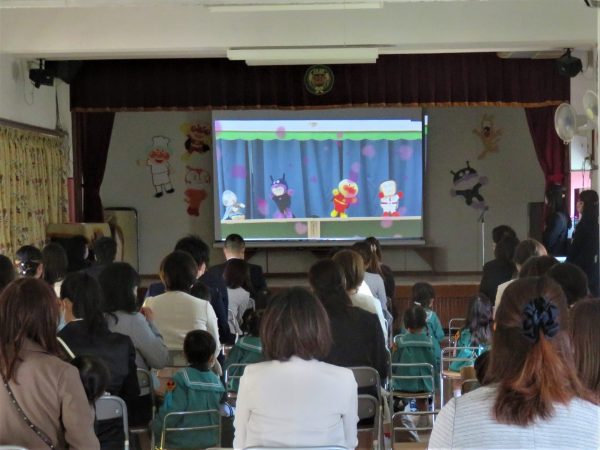 園児たちは、おうちの方と一緒に園長先生のお話しを聞き、先生方との手遊びや、先生方自作の人形劇のビデオを楽しみました。いよいよこれから園での生活が始まります。担任の先生やお友だちと一緒に、毎日を楽しく過ごしてほしいものです。